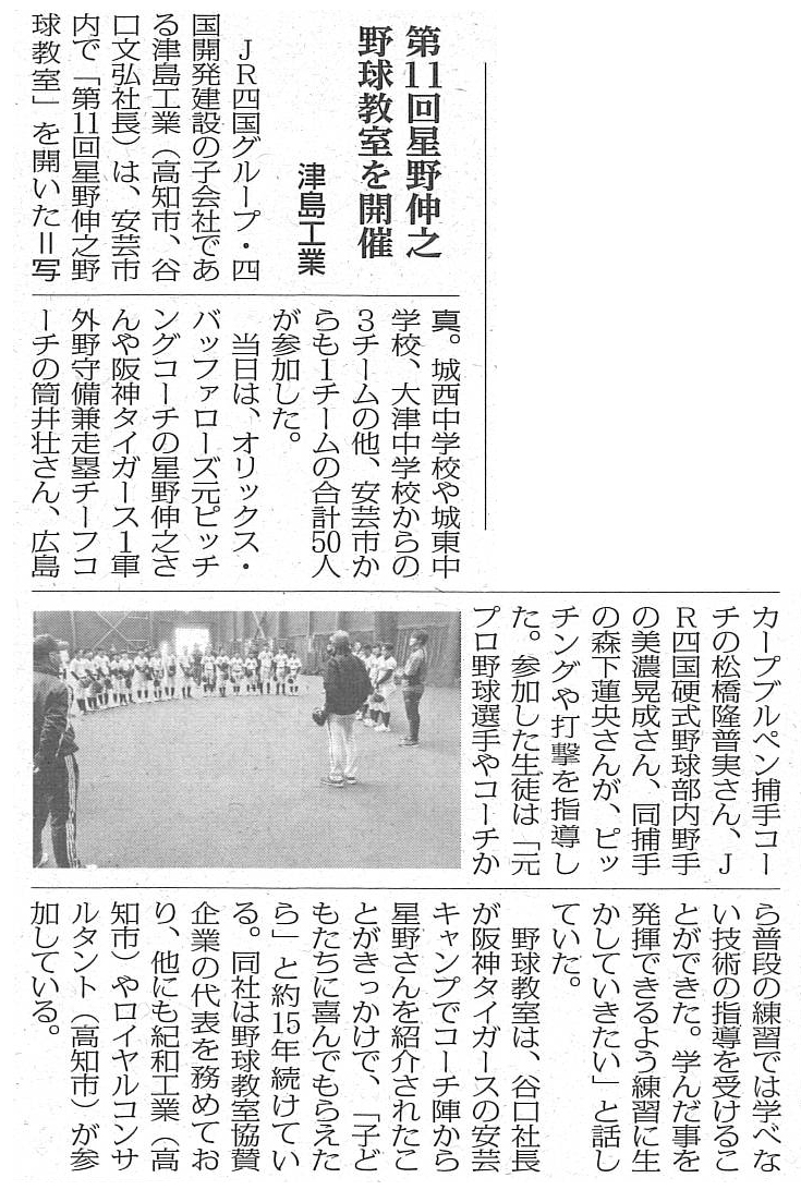 第11回星野伸之野球教室開催(協賛)をいたしました。
